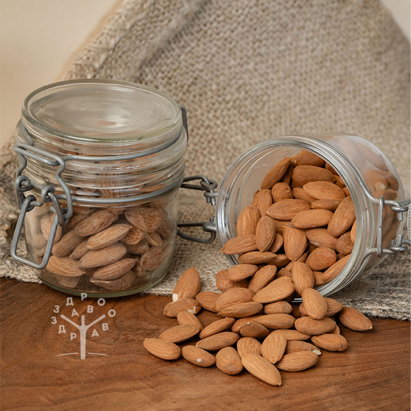 Zdravstveni benefiti: Sirovi bademi su bogati mononezasićenim mastima koje pomažu u održavanju zdravlja srca smanjenjem nivoa lošeg holesterola. Ovi orašasti plodovi su odličan izvor proteina, koji su ključni za izgradnju i obnovu mišićnog tkiva i održavanje osećaja sitosti. Takođe, sadrže vitamin E, koji deluje kao antioksidant, štiteći ćelije od slobodnih radikala i podržavajući zdravlje kože. Vlakna u sirovim bademima poboljšavaju varenje i podržavaju zdravlje creva. Mineralni sadržaj, uključujući magnezijum, doprinosi zdravlju kostiju i pravilnoj funkciji mišića. Sirovi bademi takođe mogu pomoći u regulaciji nivoa šećera u krvi, što ih čini pogodnim za osobe sa problemima sa glukozom.
